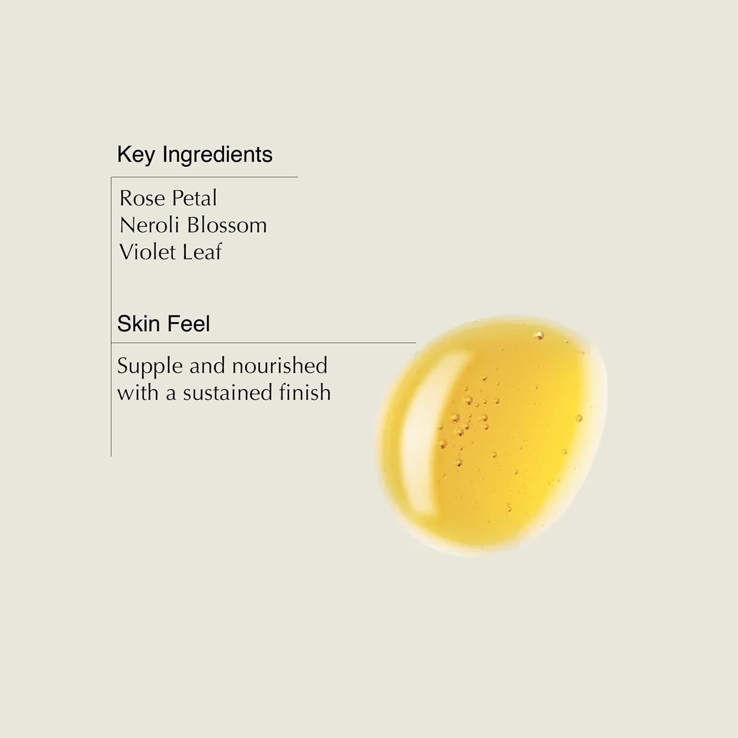 - Key ingredients: Rose Petal. Neroli Blossom. Violet Leaf