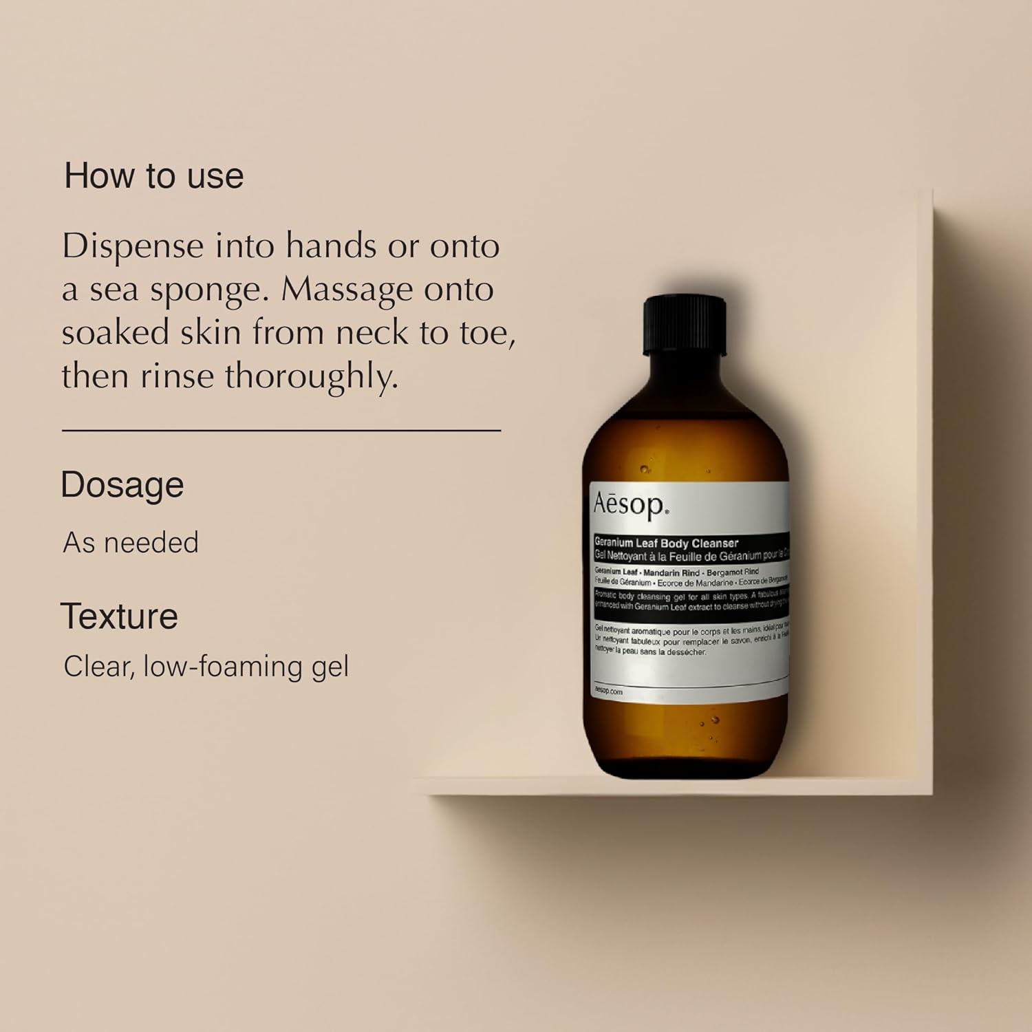 Aesop Geranium Leaf Body Cleanser Refill | Invigorating Gentle Cleansing Gel | Green. Citrus. Fresh | 16.9 fl oz