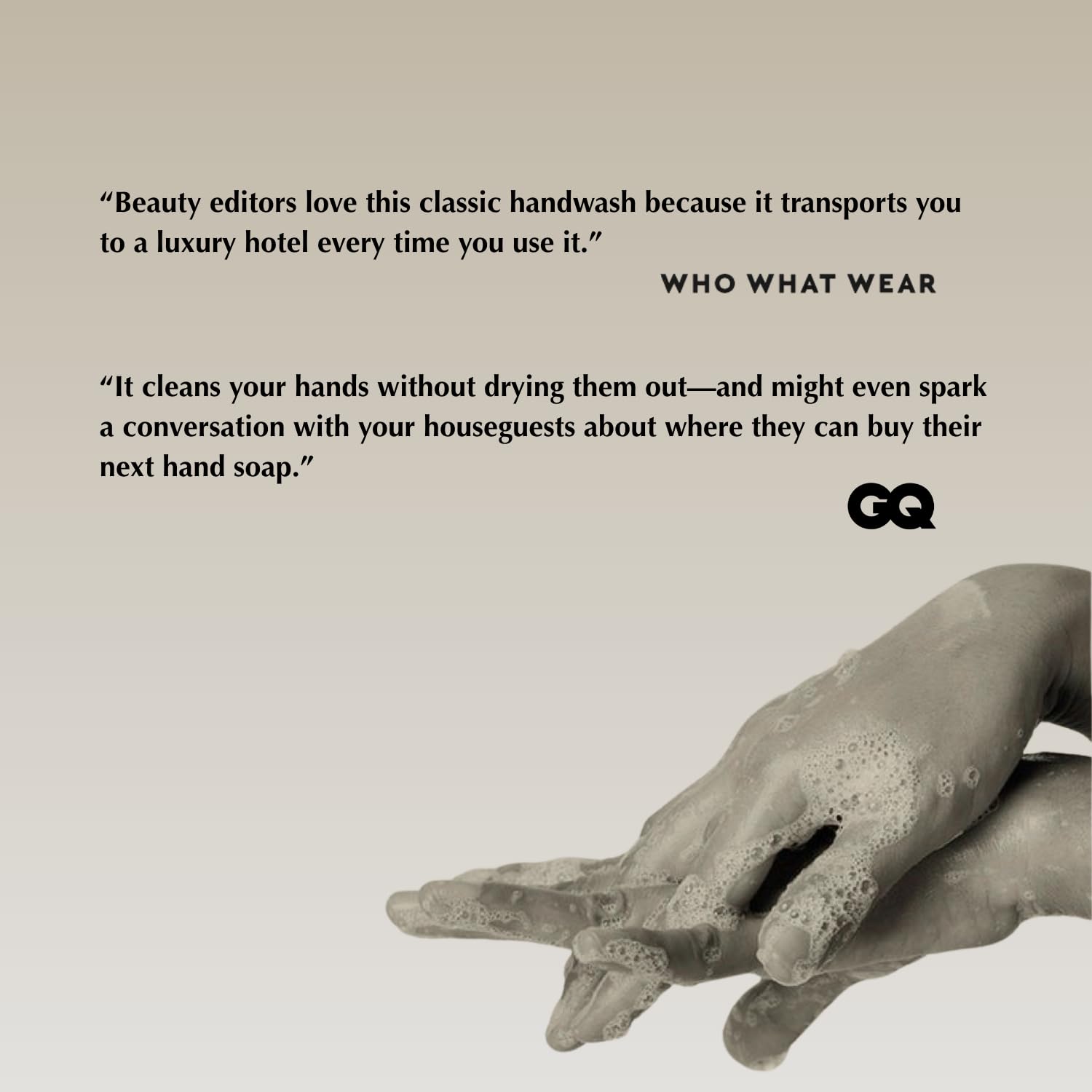 - Usage: Dispense the hand soap into damp hands. lather. rinse thoroughly